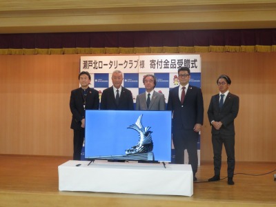 贈呈式には、社会福祉協議会様より加藤勝之会長をはじめ、関係者の皆様にご出席いただき、瀬戸北ロータリークラブより会長をはじめ関係役員が出席いたしました。社会福祉協議会様より感謝状を頂戴し、温かいお言葉をいただきました。